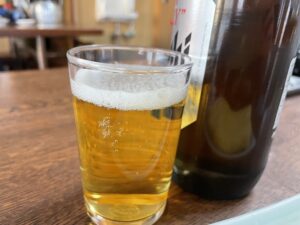 とりあえずビール、残念ながら好みじゃない銘柄しかなかったようだが。