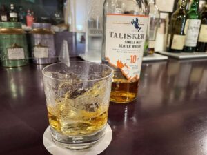 悪くない、しかしいきなりタリスカーかぁ、無粋ですが一杯おいくらですかと訊くと、まぁまぁな値段だった。