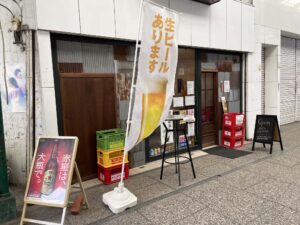 尾道のアーケード街をブラブラしてたら、酒屋の立ち飲みっぽい店があったので立ち寄ってみた。