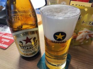 冷蔵庫にはキリンラガー瓶もあったが、“赤星は大瓶で”っていうポスターがあったので、サッポロにした。
