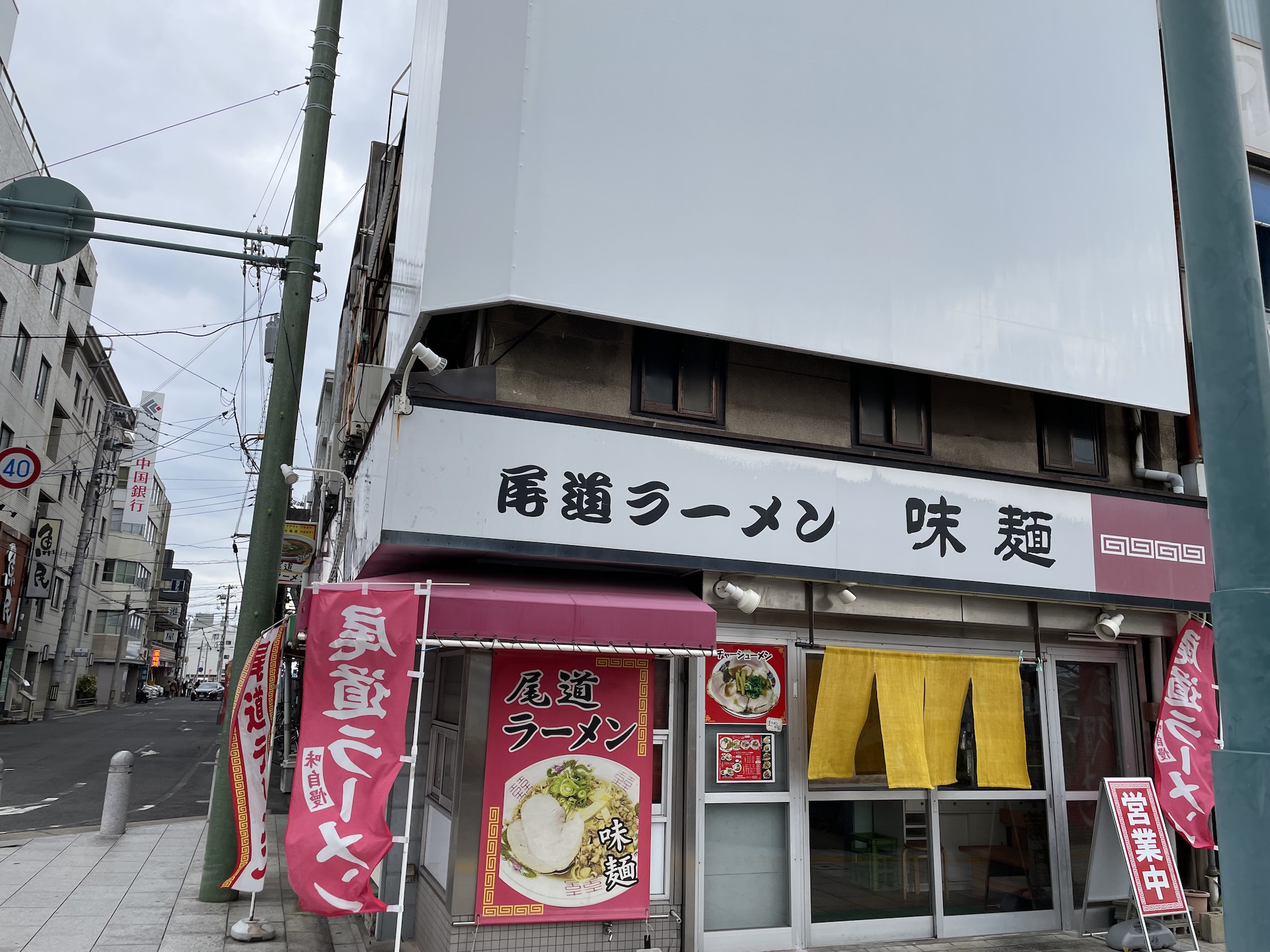 本当に駅の目の前みたいな立地、「尾道ラーメン 味麺」。