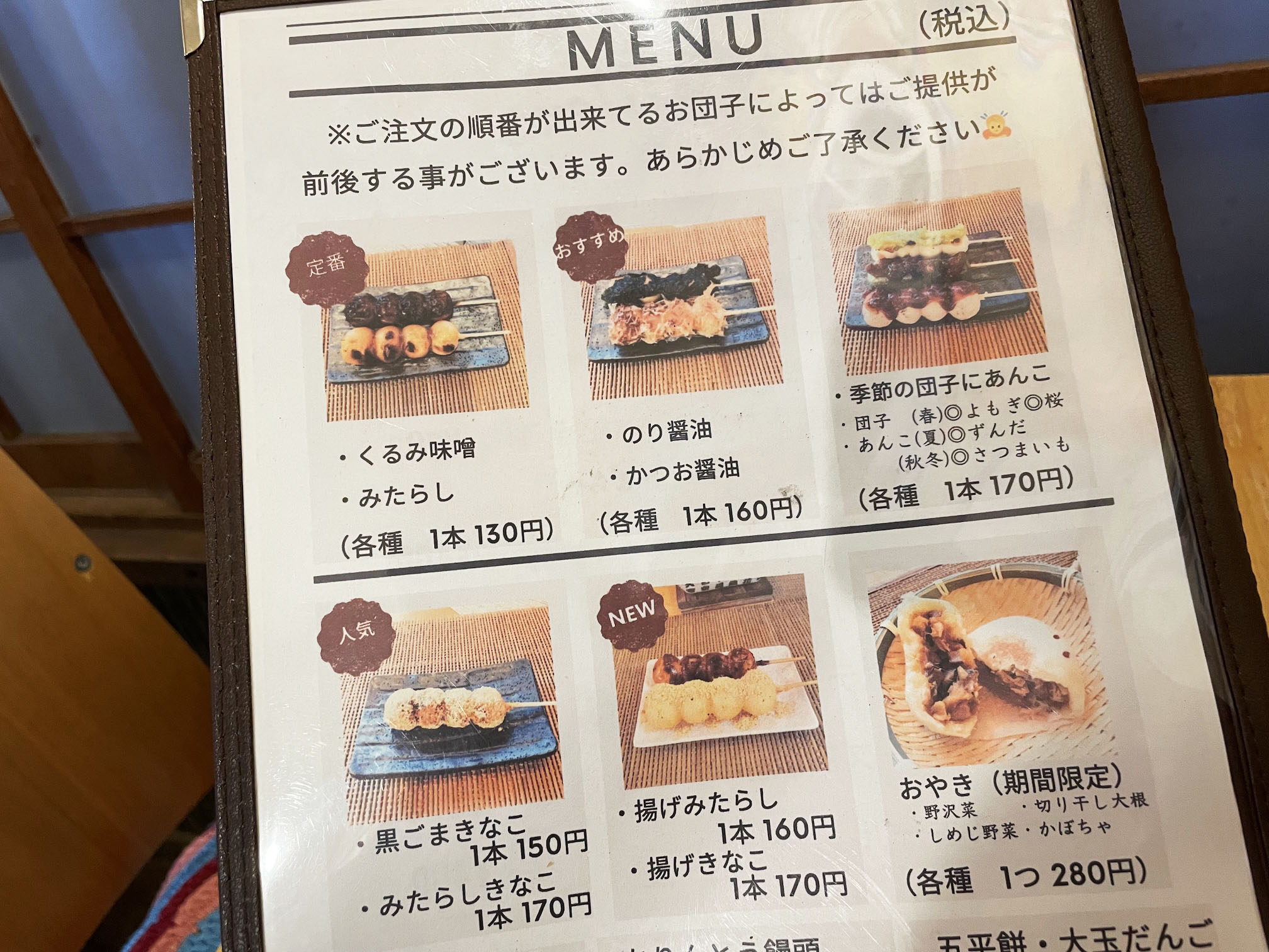 シンプルに、みたらし、くるみ味噌、各130円。