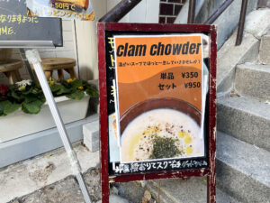 すると店の人がクラムチャウダーのセットをすすめてくれたので、それでお願いした。