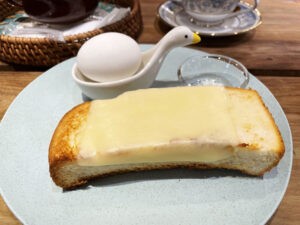 モーニングは07:30から、バター×いちごジャムかバター×チーズ、2種類のトーストセットを提供している。