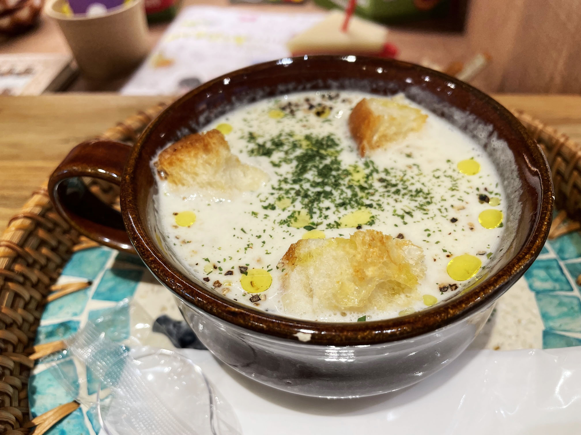 そしてクラムチャウダー、ほくほく温かくて優しい味で、満足度が高かった。