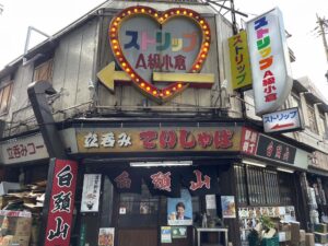 再喝発の蹂躙されたJR駅前には、今でもストリップ小屋がある。
