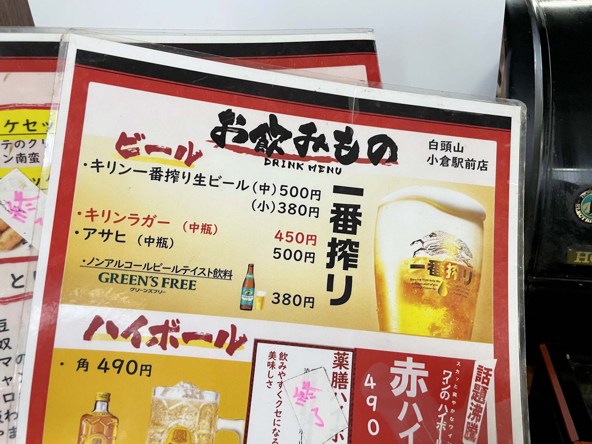 そういう飲み屋の中で、「白頭山 駅前店(立ち呑み ていしゃば)」小倉ビギナーにも入りやすい店かもしれないね。
