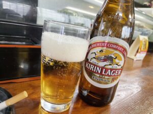 まずビール、キリンラガー瓶があって嬉しい。